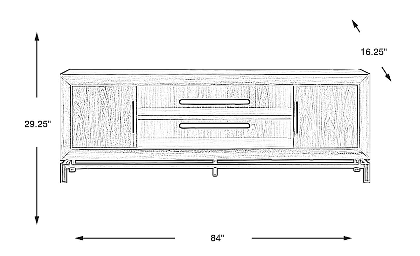 At 84 inches wide, this console is a significant statement piece best suited for larger living rooms or open-concept floor plans where it can ground a large wall. However, while it is wide, its narrow depth of 16.25 inches helps it maintain a slim profile that won't impede foot traffic, making it a viable option for narrower rooms that have the wall length to support its scale.