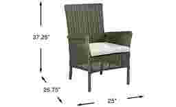 With a width of 25 inches and a depth of 26.75 inches, this armchair is sized to provide a "deep seat" feel without the bulky footprint of larger lounge furniture. Its streamlined straight-leg design and track arms allow it to fit comfortably around a dining table or as standalone seating on most standard-sized apartment balconies or compact urban decks.