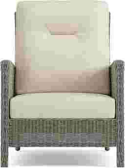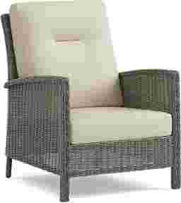 The warm familiarity of a family classic takes its cue from country club chic in the Forest Hills club chair's relaxed angles and deep seat. A weather-resistant frame of aluminum is wrapped in gray all-weather wicker in an understated weave that adds a touch of coastal charm. Thick cushions in UV-resistant beige outdoor fabric offer perfect plushness to match the relaxing slant of the arms.