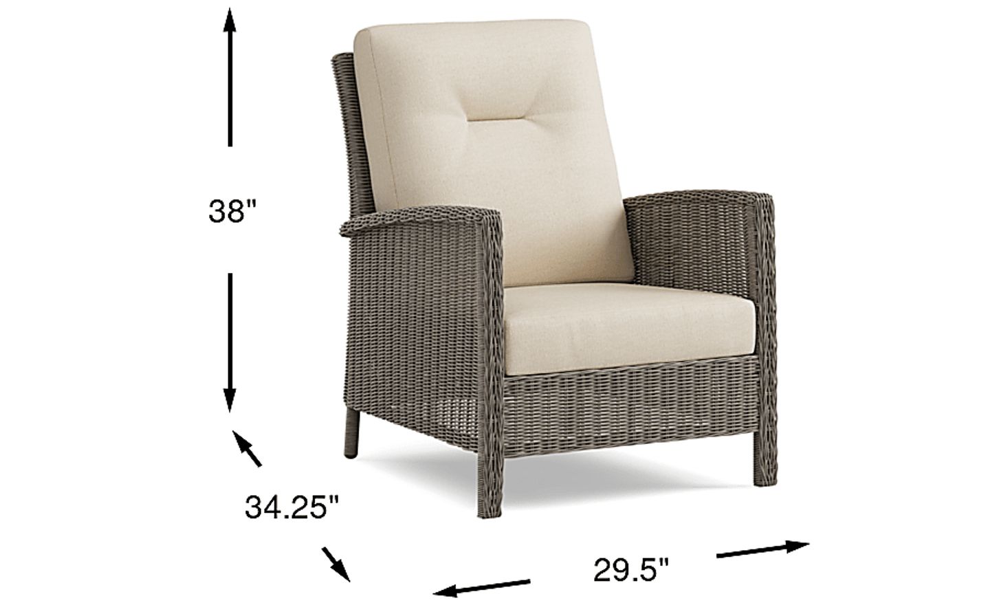 This chair is built on a high-quality aluminum frame, which is naturally rust-resistant and lightweight. This makes it an exceptional choice for humid climates or coastal homes where salt air can be highly corrosive to other metals. The frame is wrapped in a gray, all-weather synthetic wicker that is engineered to resist cracking and unraveling, ensuring the piece maintains its "coastal charm" through years of seasonal exposure.