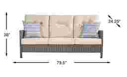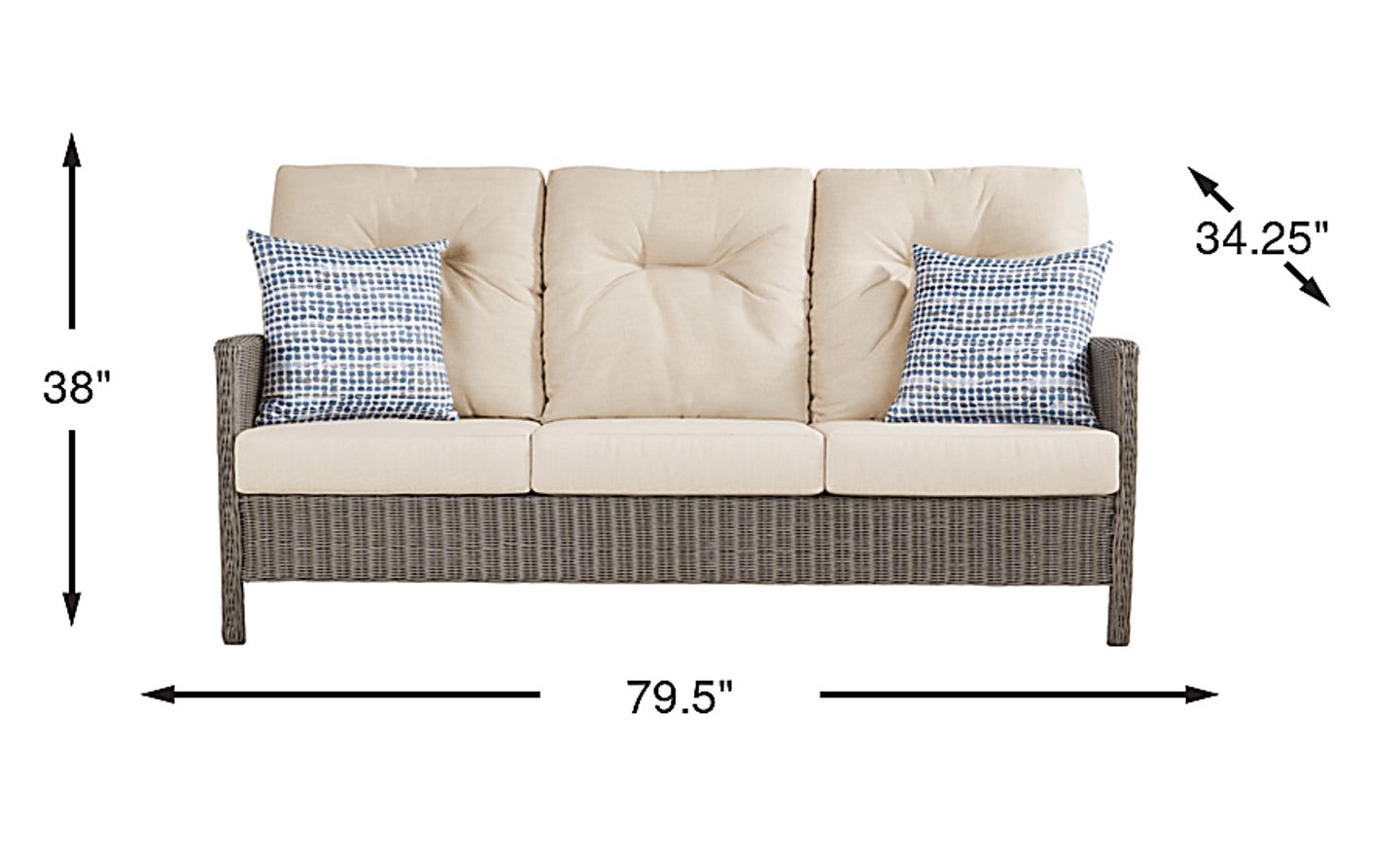 The warm familiarity of a family classic takes its cue from country club chic in the Forest Hills sofa's relaxed angles and deep seats. A weather-resistant frame of aluminum is wrapped in gray all-weather wicker in an understated weave that adds a touch of coastal charm. Thick cushions in UV-resistant beige outdoor fabric offer perfect plushness to match the relaxing slant of the arms.