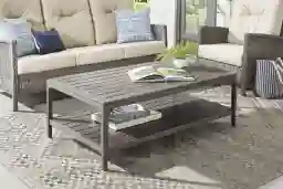The warm familiarity of a family classic takes its cue from country club chic in the Forest Hills cocktail table's thoughtful design and stylish looks. Solid weather-resistant eucalyptus wood in gray brings this accent a touch of coastal charm. A plank-style top provides a stable surface for food and drinks, while a shelf below offers a covered space for your patio essentials.