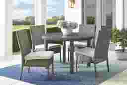 The warm familiarity of a family classic takes its cue from country club chic in the Forest Hills dining table's thoughtful design and stylish looks. A weather-resistant frame of aluminum is wrapped in gray all-weather wicker in an understated weave that adds a touch of coastal charm. A handsome 48" round glass top completes the look in outdoor-ready style.
