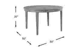 The warm familiarity of a family classic takes its cue from country club chic in the Forest Hills dining table's thoughtful design and stylish looks. Solid weather-resistant eucalyptus wood in gray brings this piece a touch of coastal charm. A handsome 50" round plank top features an umbrella hole for outdoor enjoyment rain or shine.