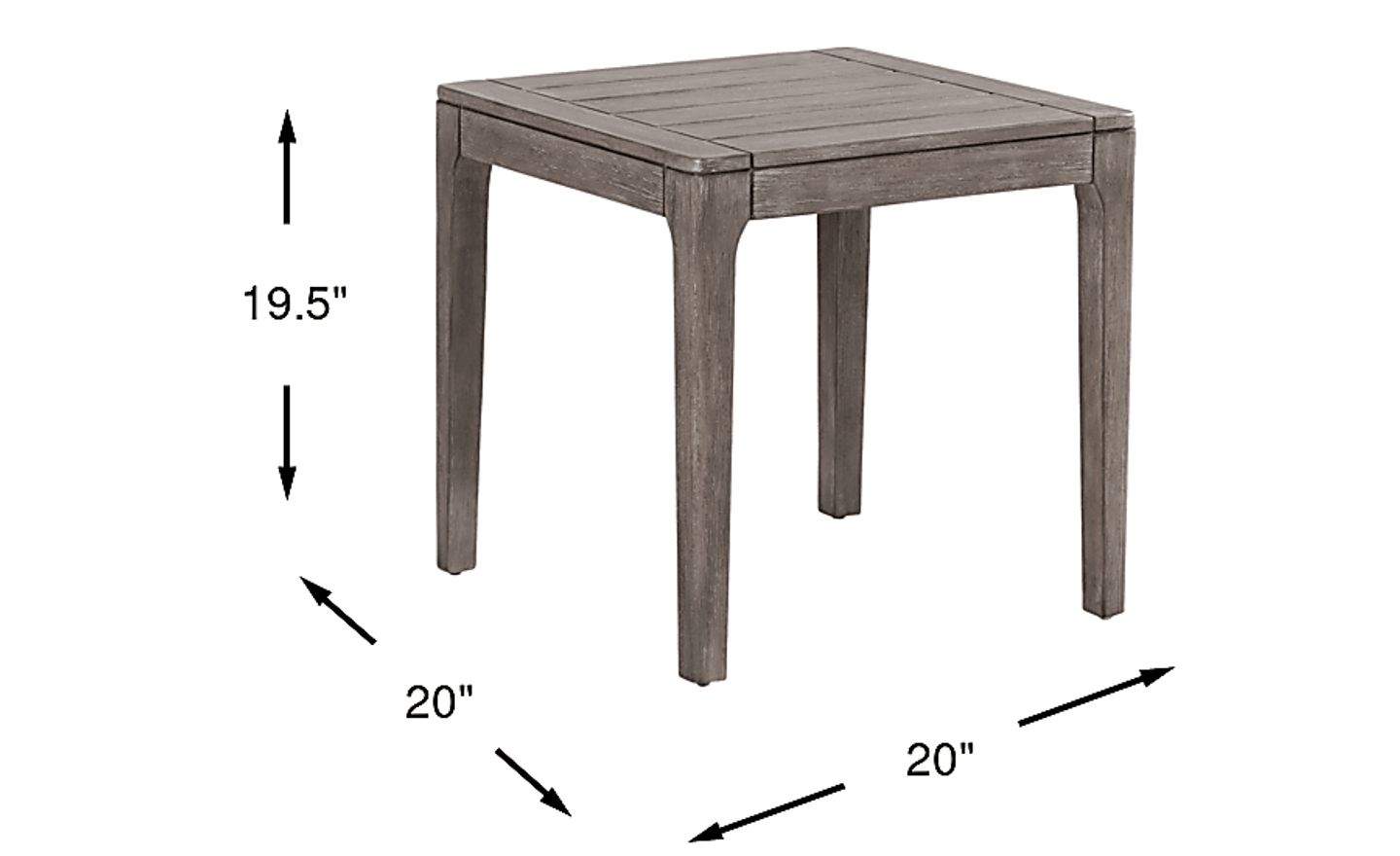 With its compact 20" x 20" footprint, this square end table is perfectly scaled for smaller outdoor environments, including apartment balconies or narrow side porches. Its height of 19.5 inches makes it a versatile companion for low-profile outdoor lounge chairs or chaises, providing a stable, plank-style surface for drinks, snacks, or décor without crowding your layout.