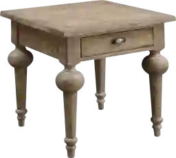 This end table is crafted to capture "French country casual" with a rustically elegant twist. The combination of turned legs, hand-distressed wood, and taupe color tones makes it an ideal anchor for rustic, farmhouse, or traditional interiors. It pairs beautifully with neutral palettes and natural textures like linen or jute.