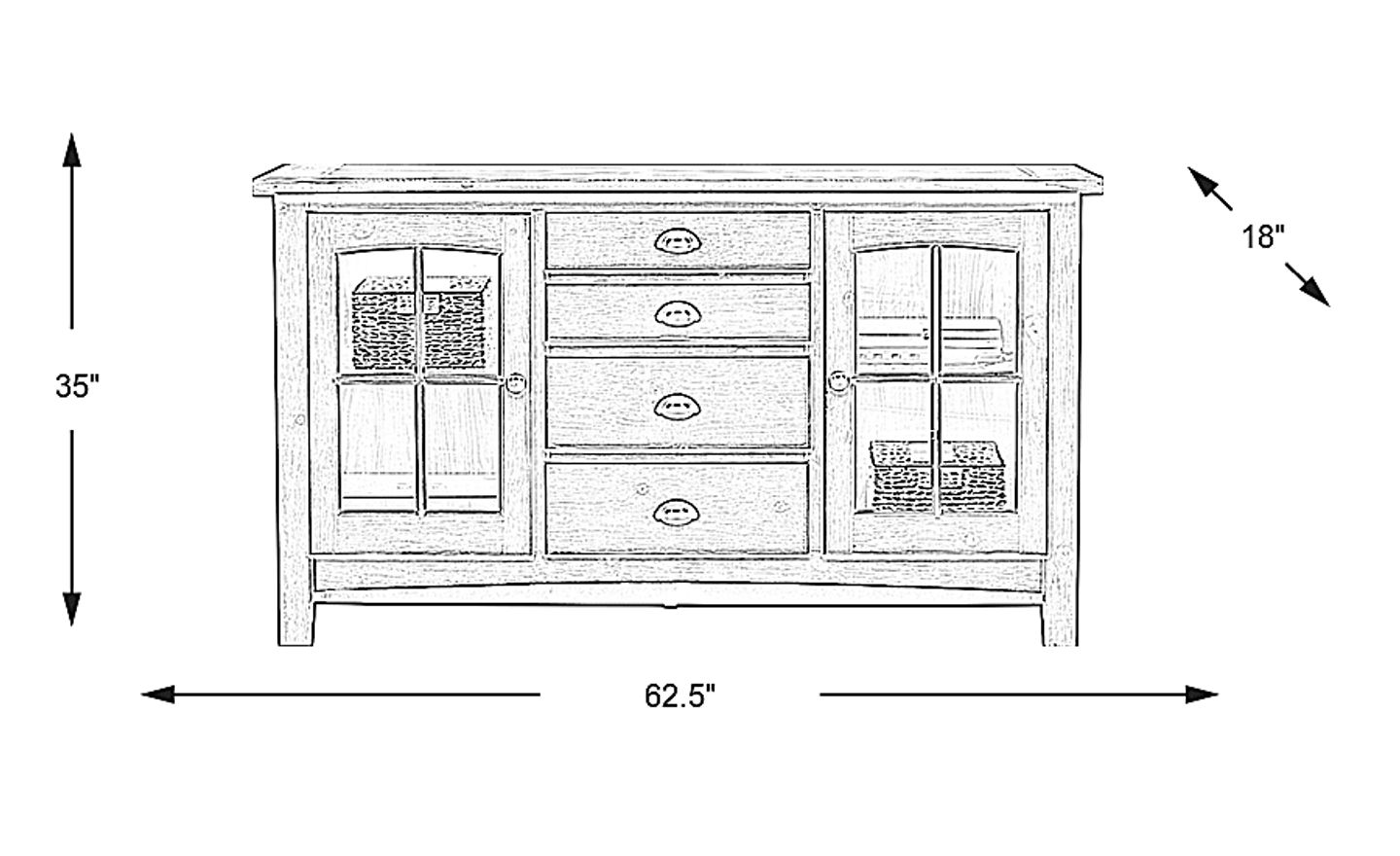 Gorgeously crafted of pine, with maple and albus veneers in a gray finish, the Foxborough flat screen console has a charming style that lends fantastic eye appeal. Two wood-framed glass doors open to reveal one adjustable shelf behind each door, while gunmetal-style hardware offers a unique contrast with the finish. Additionally, a pass through hole in the back aids in wire management, and a large top can support a maximum 70" flat panel TV.