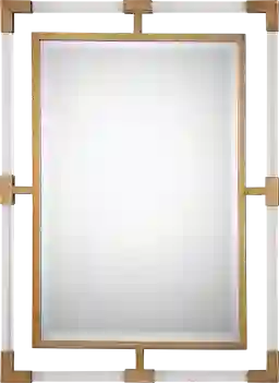 This mirror is engineered for both durability and high-end style, featuring a frame crafted from forged iron with a premium metallic gold leaf finish. The design is further elevated by suspended clear acrylic solid bars, which provide a contemporary, architectural feel. The mirror glass itself features a generous 1 1/4-inch bevel, a hallmark of quality craftsmanship that adds depth and a sophisticated finish to the piece.