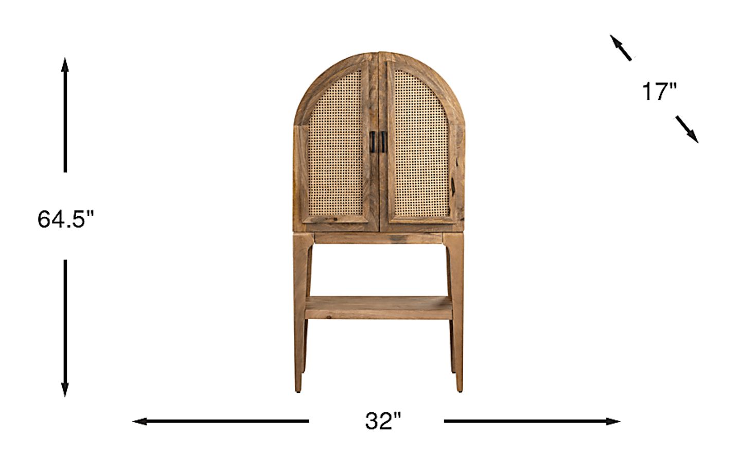Yes, this cabinet is specifically designed to maximize vertical storage in homes with a smaller footprint. With a slim depth of only 17 inches and a width of 32 inches, it fits comfortably in urban apartments or compact dining rooms without obstructing traffic. Standing at 64.5 inches tall, it provides ample room for a full bar setup—including stemware, bottles, and tools—by utilizing height rather than floor space.
