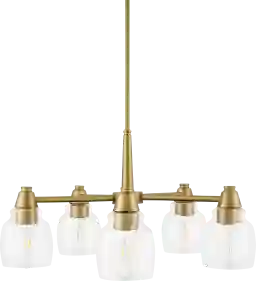 This chandelier is designed for ambient lighting, featuring five individual light points to cast a warm, inviting glow. Because it uses clear glass shades, it ensures maximum light output and clarity compared to frosted alternatives. This makes it bright enough to serve as the primary light source in a medium-sized dining room while maintaining the elegant, airy feel characteristic of Art Deco design.