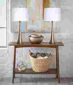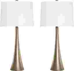 The slim and sleek Frantz Street lamp set of 2 perfectly balances modern flair and minimalism with its clean elongated lines and gracefully curved tapered body. The metal lamps have a beautiful gold plated finish making them sturdy and durable while evoking a mid-century modern aesthetic. Topped by an elegant off-white linen shade and a finial that matches the base this set of lamps is a tasteful addition to any space. Partial assembly may be required.