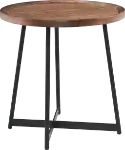 The Fraust brown end table is both perfectly symmetrical and distinguished. With a walnut stained veneer top, solid edges, and a black steel base, let this side table catch the eye of any wandering guest. Prominent and bold, while also graceful. Customer assembly is required.
