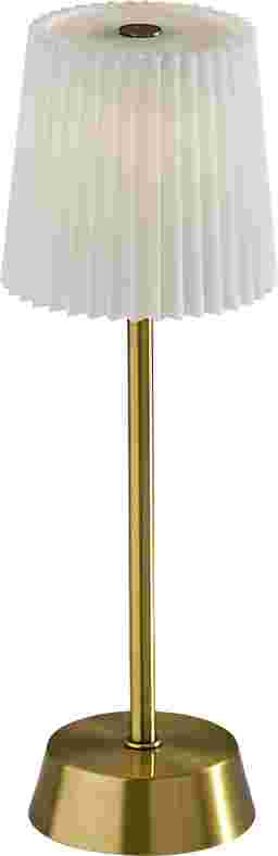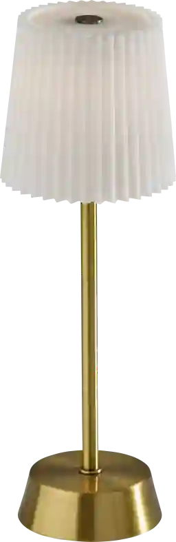 Meet the Fredo Lake Brass Lamp, your reliable companion for any lighting need, indoors or outdoors. With its antique brass finish and pleated off-white plastic shade, this lamp adds a touch of modern elegance to any space. Standing at a height of 14 inches, it's compact yet powerful, offering adjustable brightness levels through its 3 Level Touch Dimmer Switch. Powered by a rechargeable 1.5W LED, it ensures energy efficiency without compromising on luminance. Plus, its IPX4 location rating makes it suitable for outdoor use, bringing illumination to your patio gatherings or evening picnics. Partial assembly may be required.