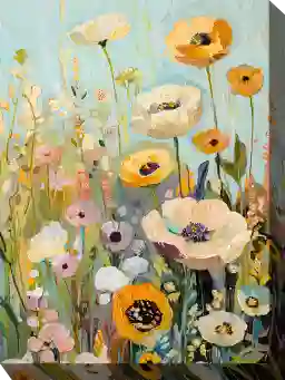 Reaching for the sun, the bright petals of the Free Spirited outdoor wall art bring the warmth of a summer day to life any time. Flowers in buttery yellow and romantic blush contrast with lowlights in dramatic blue and purple on an artist canvas gallery wrapped on all-weather poly-vinyl stretcher bars and coated with UV- and waterproof lacquer to prevent fading. Designed to withstand 60 mile per hour winds, this print includes simple and effective hardware for outdoor installation. This outdoor canvas art can be placed in any outdoor location with direct exposure to the elements.