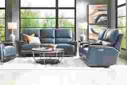 Fremont Blue Leather 5 Pc Dual Power Reclining Living Room