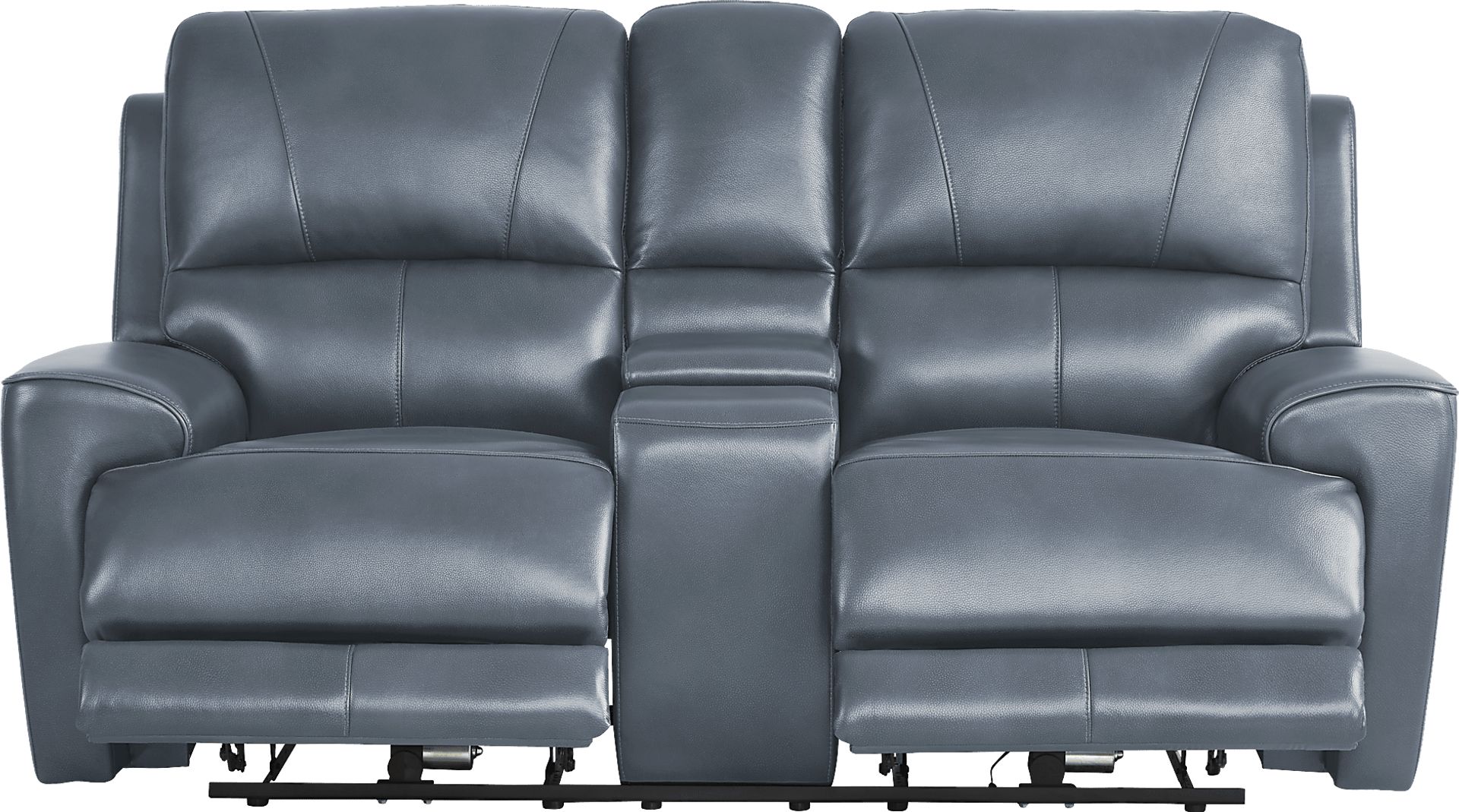 Aristocratic and easily contemporary while boasting a sophisticated timeless silhouette, the Drew and Jonathan Fremont dual power console loveseat infuses every room with the nostalgic comfort of a well-used library and the warm embrace of shared familial memories. Traditional in style, it features blue top grain leather where the body touches made even more relaxing by a single attached cushion and sumptuously padded arms, all highlighted by the contrast welting's stunning visual details. This piece boasts dual power including a power adjustable headrest and extended footrest for extra support and leisure. Zero gravity reclining adds the final touch for the ultimate experience in reclining comfort, and its control panel includes USB-C and USB-A charging ports to keep your electronics close at hand and at the ready. The loveseat's console contains cupholders and a console box that can be easily removed to adapt to your own personal relaxation style. Upholstery: Top grain leather where the body touches and polyurethane fabric sides and backs. Leather is a durable, low maintenance product; however, general regular maintenance is necessary. To keep your leather clean, vacuum it regularly, removing any dust, and clean it with water and a mild non-detergent soap.