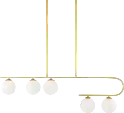 With five individual lights encased in white globe glass shades, this chandelier is designed to provide a soft, diffused glow that creates a warm and inviting atmosphere. While it serves as a stunning Art Deco-inspired centerpiece, the white glass helps minimize glare. For tasks requiring higher visibility, we suggest pairing it with dimmable bulbs to adjust the ambiance from a bright dinner setting to a softer, more intimate evening light.