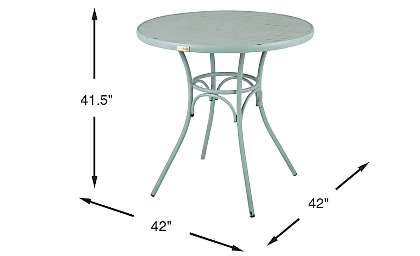 The French Cafe bar height dining table is a stylish selection that brings the charm of a Parisian bistro onto your patio. The 42 inch top is perfect for entertaining guests with light bites or cocktails, while also making it a great place to perch solo for your own outdoor escape. Crafted with lightweight aluminum, the teal finish is hand-painted and hand rubbed, creating a well-loved, distressed effect.