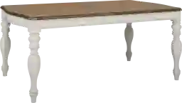 Bring a classically inspired look into your dining space with the French Market dining table. The traditional appearance is enhanced by the chipped white distressed finish giving this piece an antique appeal. An oak veneer table top in a beautiful brown finish provides an exquisite surface to serve meals for any gathering. The spacious 42 x 72 table top extends up to 90" with the addition of an 18" leaf allowing for the easy accommodation of your guests.
