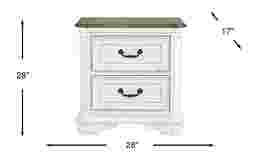 Perfect for bedside storage, the French Market nightstand offers transitional charm and ample storage for the essentials. Its oak veneer construction is complemented by a white lacquer finish with a distressed design that offers a rustic touch. The two roomy drawers are accented by black drop bail drawer pulls for an antique-inspired look and deliver a great place for storing smaller items.
