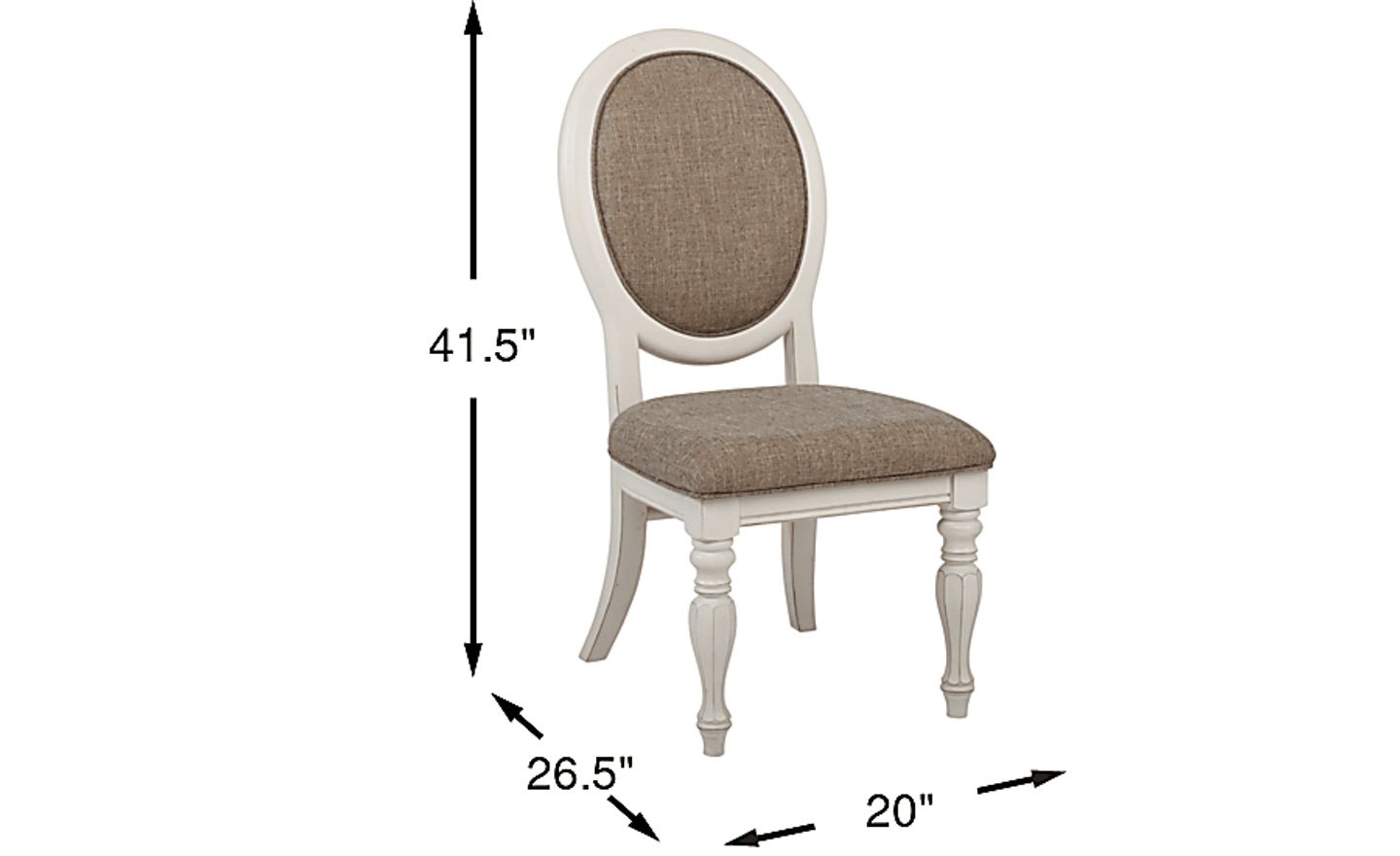 This armless side chair is an excellent solution for compact spaces. With a width of only 20 inches and a streamlined profile, it occupies less floor space than an armchair, allowing you to fit more seating around your table without making the room feel crowded. The "chipped white" finish and open turned-leg design also help create a visually light and airy feel, making a small dining area appear more open.