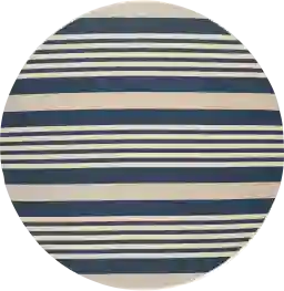 The composition of 85.4% polypropylene and 4.2% vinyl provides a superior balance of comfort and industrial-strength durability. Polypropylene is highly valued in the furniture industry for its UV resistance and moisture-wicking properties, ensuring the navy stripes remain vibrant even under direct sun exposure. The addition of vinyl enhances the rug's structural integrity, allowing it to maintain its shape in high-traffic entryways or busy outdoor family zones.