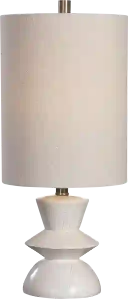 Yes, the geometric base is designed for both style and stability, providing a secure foundation that helps prevent the lamp from tipping. This sturdy construction makes it a practical choice for high-traffic living areas or households with active children and pets. The balanced weight of the base ensures it stays firmly in place on your console or bedside table, offering peace of mind alongside its mid-century aesthetic.