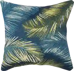 Yes, the Frond Coast pillow is specifically designed with a coastal and botanical vibe. The navy background provides a sophisticated contrast to the shades of green and aqua in the contemporary leaf pattern. Crafted on a traditional loom and finished with a durable polyester backing, it brings a transitional chic ambiance that complements both modern patio sets and traditional sunroom furniture.