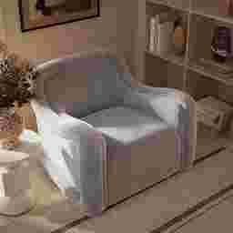 The cream (beige family) upholstery serves as a versatile anchor for various decor styles. For a modern aesthetic, our stylists suggest pairing the chair’s sensual curves and bold tubular arms with contrasting textures, such as a high-pile rug or a sleek metal end table. Its clean lines allow it to function as a sophisticated standalone piece or as part of a larger, coordinated seating arrangement.
