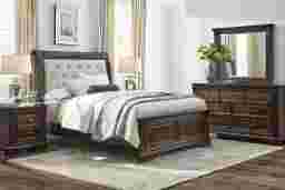 Fuller Brown Cherry Finish 3 Pc Queen Upholstered Sleigh Bed