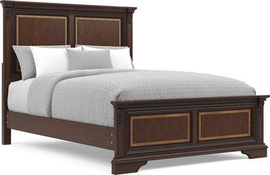 Indulgence awaits when the richness of the Fuller bed's dignified, rakish charm tempts you back to your serene sleep sanctuary. Cherry veneers in dark brown create an elegant mood, while light walnut inlays on the headboard and footboard add contrast. Punctuating the moulded trim on top are subtle carved pilasters for a perfect finishing touch. Mattress and foundation (if required) sold separately.