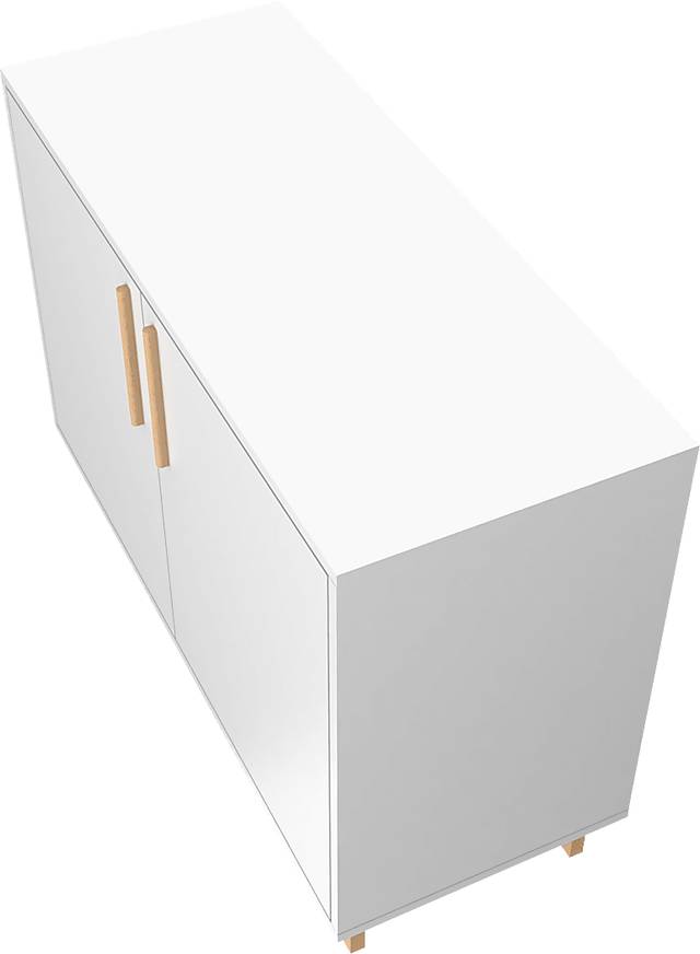 Mid-Century modern and elegant design blend functionality and style with the Fuqua white sideboard, that's both great for hosting parties and dinners in. Its shelving is perfect for keeping items safely tucked away, and two doors conceal two long open shelves that offer ample space for dishes, dinnerware, and beyond. Versatile with its clean lines and splayed legs, this piece blends well with any existing decor, making it easy to go from living space to dining area with a few decorative touches. Customer assembly is required.