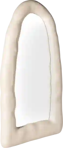 Introducing the Akeson cream floor mirror. Crafted with organic bumpy texture and a beautiful sculptural arch, this mirror brings a touch of natural beauty and artistic appeal to your space. Expertly made with fiberglass, it combines durability with stunning design, making it a functional and stylish addition to your home. Customer assembly is required.