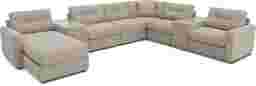 Discover the limitless possibilities of the Drew & Jonathan ModularOne, thoughtfully designed with comfort and flexibility in mind. This customizable seating solution features individual pieces that can be reconfigured to the shape you need. Game days, movie nights, sleepovers, and everyday relaxation are all better when the seating arrangement you want is always right at your fingertips. Each individual piece is upholstered on all sides in our signature fabric, New Horizon. This soft, beige chenille includes Repreve yarn, made with recycled plastic bottles. The open seating includes a chaise and has welted track arms, top-stitched seat cushions and button-tufted back cushions for an elegant silhouette. Two media consoles provide hidden storage, USB charging ports, wireless charging, bluetooth-enabled speakers, and double as side tables with sleek acrylic tops. A matching pillow provides the perfect final touch. Includes LAF chaise, two consoles, three armless chairs, corner wedge, and RAF chair. Visit a showroom to learn more about individual components and to work with a sales specialist to customize your own configuration today.