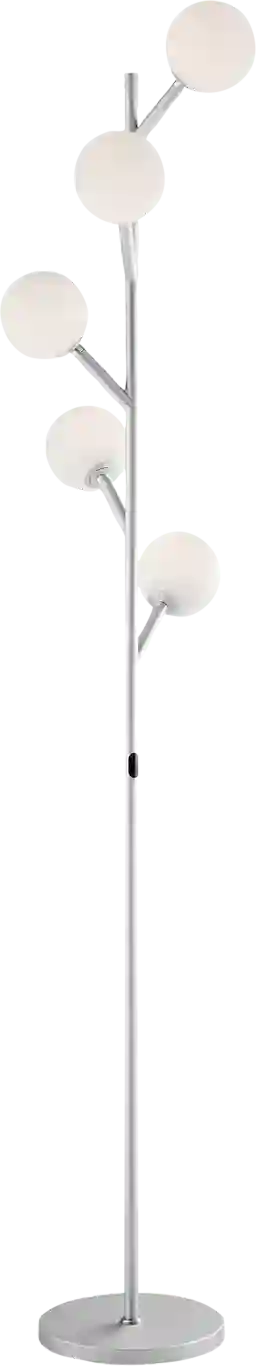 This floor lamp is an excellent primary light source for rooms lacking overhead fixtures. Its "tree" design features five frosted glass orbs that house bright LED lights, providing ample, multi-directional illumination. Because the light is diffused through frosted glass, it creates a bright yet soft glow that fills a space without the harsh glare often associated with exposed bulbs.