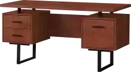 Feel like a boss in your home office when you sit down to work at this mid-size Billingsly computer desk with 3 storage drawers. The thick-panel floating desktop provides generous room for a laptop and writing materials, and allows you to use the tops of the drawer units as extra surfaces. Finished in the same cherry wood-look laminate as the desktop, 2 small drawers and 1 large drawer with a bar for hanging files offer space for items you want to keep off the work surface. For flexibility, the drawer units are reversible and can be installed on either side according to your preference. Supporting the desk are metal legs in a black finish with a modern, stylish U shape. Customer assembly is required.