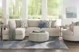 This sectional measures 116.5 inches in width and 76 inches in depth. To ensure a comfortable fit, we recommend measuring your designated area and allowing for 18 to 24 inches of clearance for walkways. Because this is a two-piece set, it offers a more streamlined profile than larger multi-piece configurations, making it easier to place in rooms with defined dimensions.