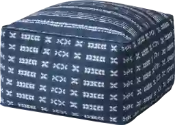 This large Elim floor pouf with a traditional indigo design can be used as an accent piece or extra seating in your living room. The pouf measures 20"W x 20"D x 12"H and is machine-woven of polyester and linen.