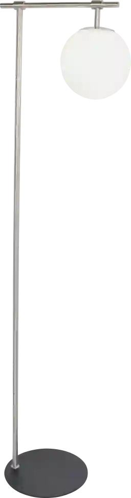 Modern minimalism combines with a Mid-Century style in this downbridge Glenridge View silver floor lamp for your home or office. Lustrous tones over metal construction is a contrasting complement to the white orb glass shade, while the ultra-thin heavy base allows the gorgeous design of the lamp to stand on its own. Partial assembly may be required.