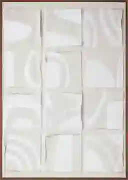 Inspired by the Dadaist movement and collage art, Graesen is an homage to Ellsworth Kelly's "Cité," where ink strokes were brushed across a sheet of paper, cut into twenty squares, and randomly recomposed in a grid pattern. Shadowed tones add depth and dimension to the collage-like squares, while a neutral color palette and irregular shapes offer a softness to the sharp shapes-a remarkable abstract piece expertly finished with a solid pine frame. Customer assembly is required.