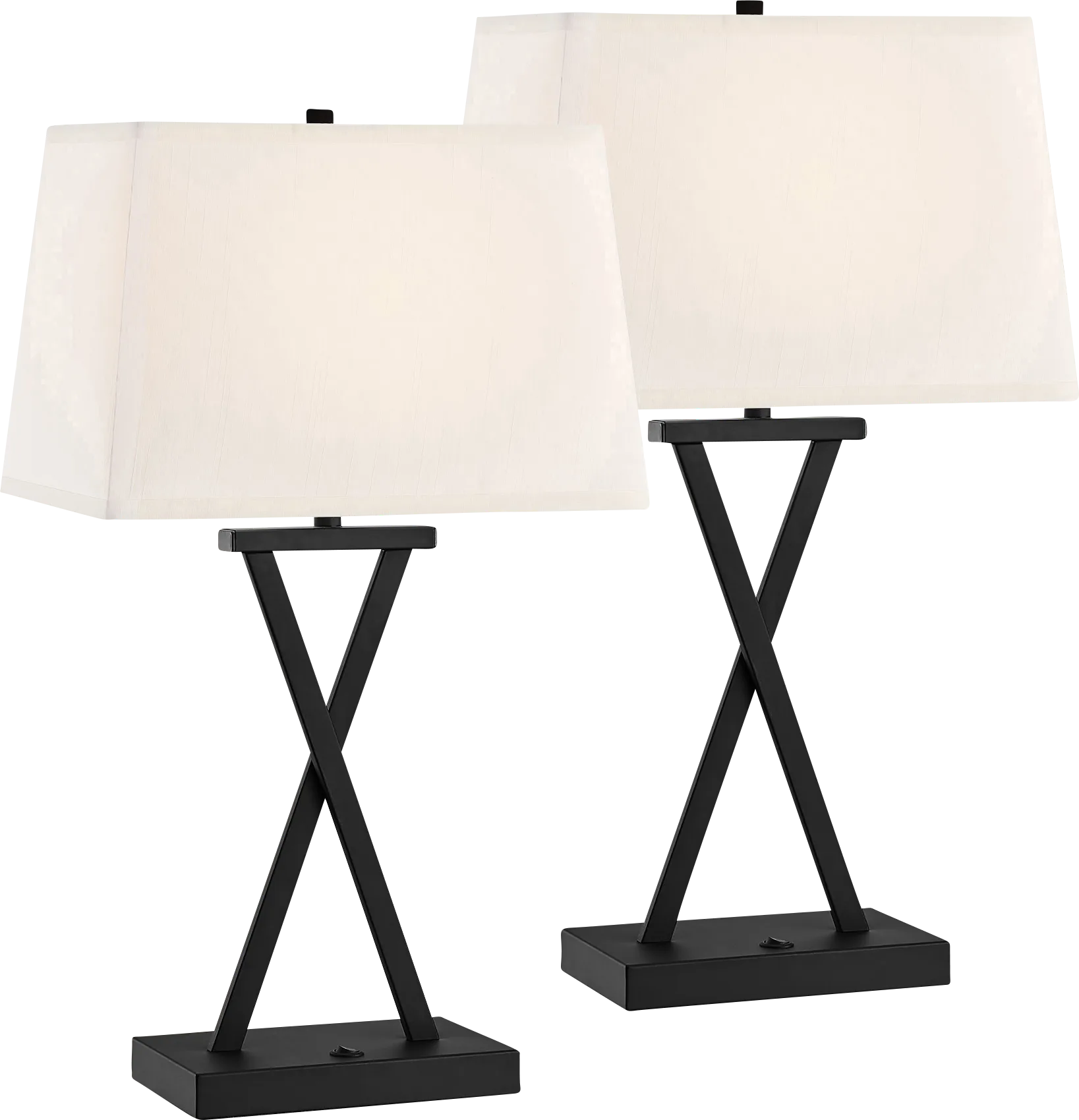 This set is specifically designed as a transitional piece, blending traditional silhouettes with contemporary metalwork. The sharp, crossing geometric lines provide a modern focal point, while the rectangular fabric shades offer a classic touch. This versatility allows them to anchor a modern urban apartment or add a sophisticated, industrial edge to a more traditional suburban home.