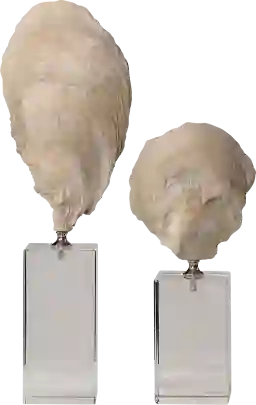 This set is designed to bridge the gap between traditional nautical subject matter and contemporary luxury. While the oyster shell motif is a classic coastal element, the addition of sleek chrome and geometric crystal bases elevates the aesthetic. This makes the sculptures versatile enough to complement a minimalist urban space or a more traditional seaside home looking for a refined, updated accent.