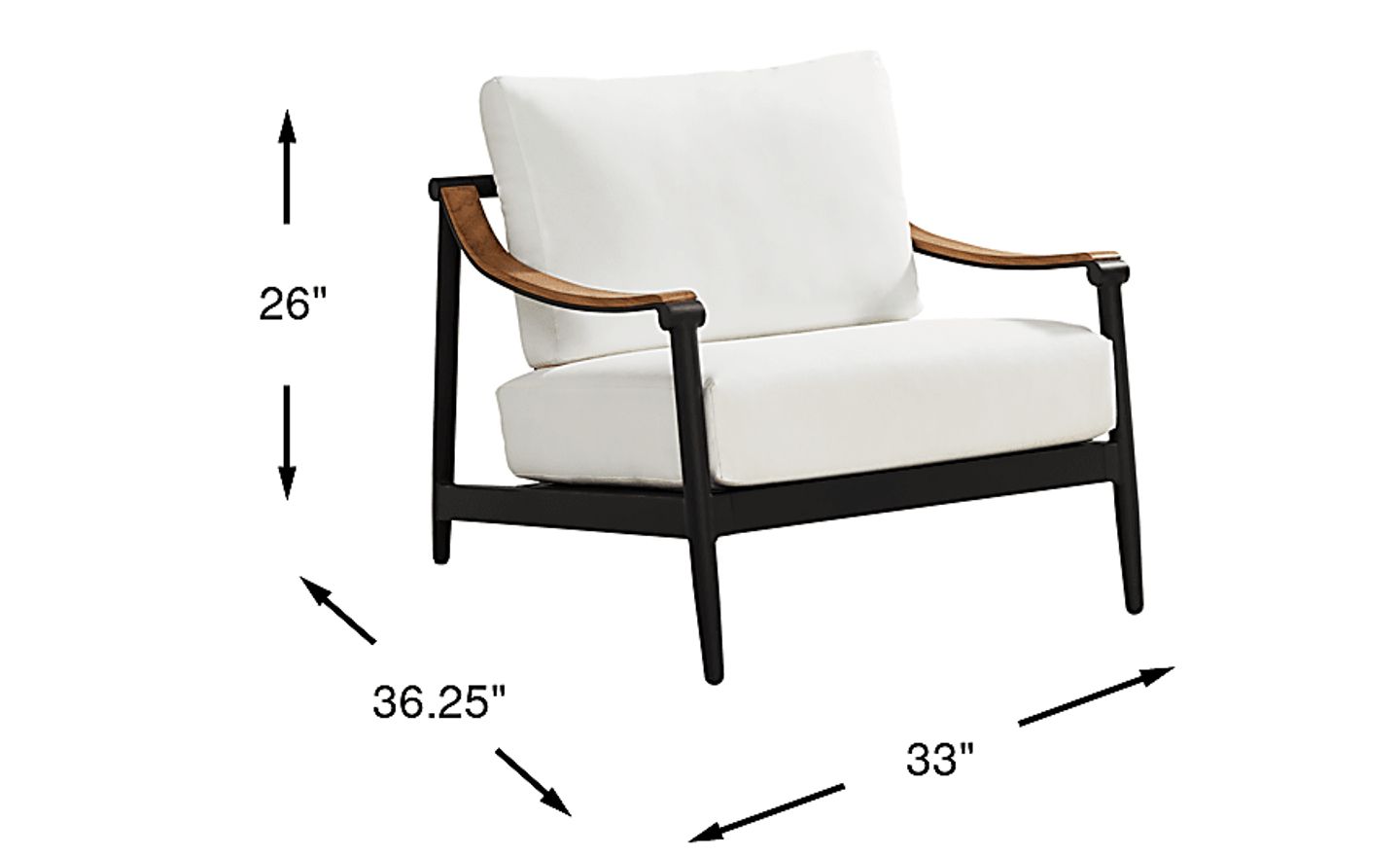 Cool, modern confidence radiates from the swooping curves of the Harlowe club chair from Cindy Crawford Home to create a space where connection and relaxation stretch long, long, long into the night. The deep slant of this seat promises indulgent luxury, while the tailored cushions in UV-resistant white fabric offer added support and style. A weather-resistant aluminum frame in black is accented with sloped arms topped in teak, all standing on smooth tapered legs and back posts. Select cushion colors also available in Sunbrella fabric.