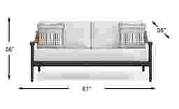 Cool, modern confidence radiates from the swooping curves of the Harlowe loveseat from Cindy Crawford Home to create a space where connection and relaxation stretch long, long, long into the night. The deep slant of this seat promises indulgent luxury, while the tailored cushions in UV-resistant white fabric offer added support and style. A weather-resistant aluminum frame in black is accented with sloped arms topped in teak, all standing on smooth tapered legs and back posts. Select cushion colors also available in Sunbrella fabric.