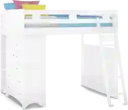 Ivy League 2.0 White Full Loft With Chest And Bookcase