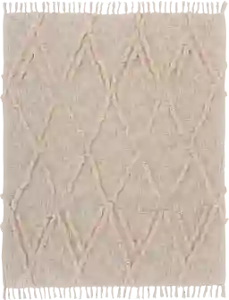 With dimensions of 50" x 60", this is a classic throw size designed for versatility. In a living room, try the "casual drape" method over the arm of a sofa or the corner of a chaise to highlight the fringe and diamond pattern. For a bedroom, fold it lengthwise and layer it across the foot of the bed to add a pop of beige neutral tone and inviting texture to your bedding ensemble.
