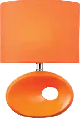Zabelle is a modern table lamp with a uniquely designed ceramic body in orange color. The matching colored elliptical fabric shade provides vivid illumination to any space. It features an on/off rocker cord switch. The lamp utilizes one incandescent bulb, 60 Watts Max. The bulb is not included. Customer assembly is required.
