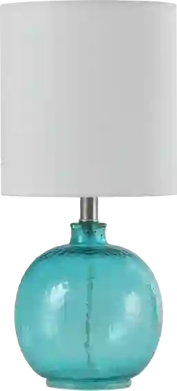 The Alta glass table lamp brings a touch of antique beauty to any home. The translucent cerulean finish brings a fun, exciting quality to the fixture. The shade is constructed from white fabric and complements the glass body. Customer assembly is required.