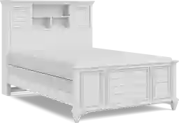 The Hilton Head bookcase bed is perfect for your bookworm, collector and every kid in-between. The timeless style of this bed is coupled with convenient built-in shelving in the headboard that helps keep everything at arm's reach and a footboard that features a shutter look. Two sliding panels on tracks provide a mix of concealed and display storage while built-in wire management holes prevent clutter. Finished with a versatile white paint, this bed is a great centerpiece for your child's bedroom. Mattress and foundation (if required) sold separately.