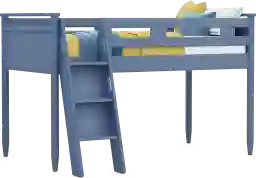 The ultimate collection for your color obsession is finally here with the Modern Colors twin low loft bed. Showcasing slate blue finish, each piece balances ultra-sleek craftsmanship with easygoing comfort. Featuring a twin bed that sits lower to the ground than a traditional loft, this piece features a ladder that affixes to the side of the frame for three easy steps up and three easy steps down. Mattress and foundation (if required) sold separately. This product requires a bunkie board (sold separately).